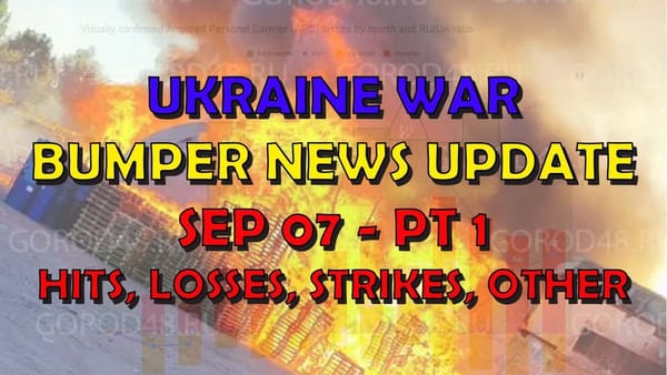 Hits and Losses Ukraine War Update BUMPER NEWS: Pt 1 - Overnight & Other News a year ago • 14 min read